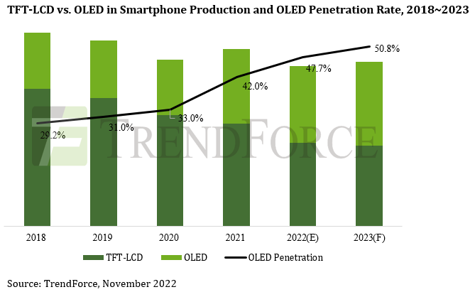 The adoption of the OLED display technology among smartphones is on a gradual rise. According to TrendForce’s latest research, the penetration rate of smartphones that feature an OLED panel (regardless of whether the OLED panel …
