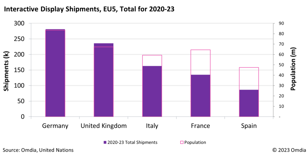 Shipments of interactive displays in key Western European countries slowed in the second quarter of 2023, dropping 5.3% year-over-year. However, the long-term outlook remains positive according to research firm Omdia.